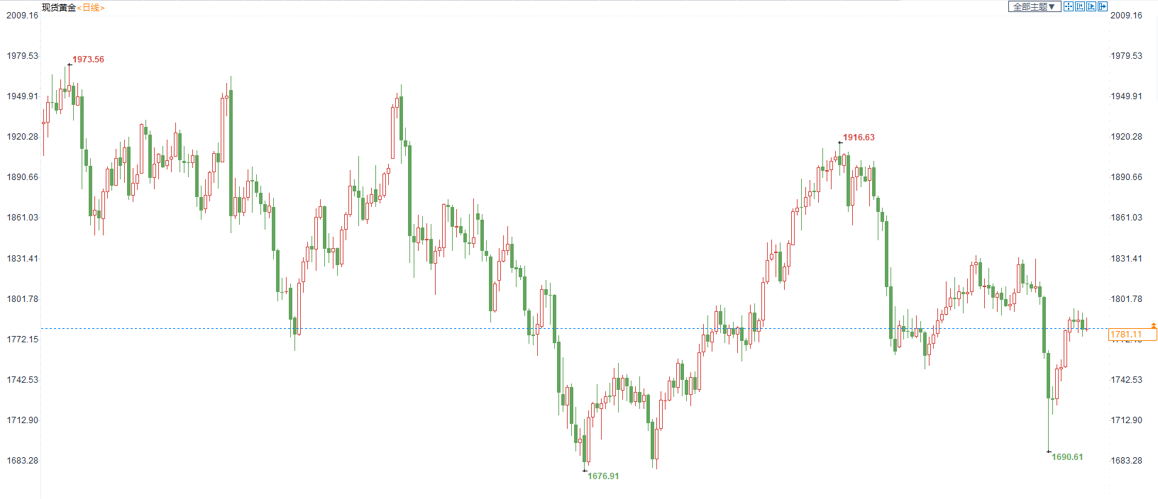 周六(8月21日)金价基本维持震荡交投,当周金价上涨1.36美元,涨幅0.08%,收盘报1779.75美元/盎司。金价并没有走出明确方向而选择窄幅震荡,主要由两方面因素共同决定。利空方面,本周美联储多位官员,以及美联储纪要显示或可今年缩债,给金价带来沉重的压力。利多方面,诸多因素支持金价,包括市场对全球央行紧缩的谨慎情绪,变异病毒的担忧情绪,美国经济疲弱,美国政府债务上限,地缘政治局势紧张等。