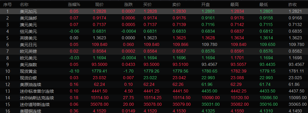美元兑日元涨0.04%至109.78;美元兑瑞郎跌0.20%至0.9171。英镑兑美元一度触及一个月最低,尾盘跌0.12%,报1.3622。