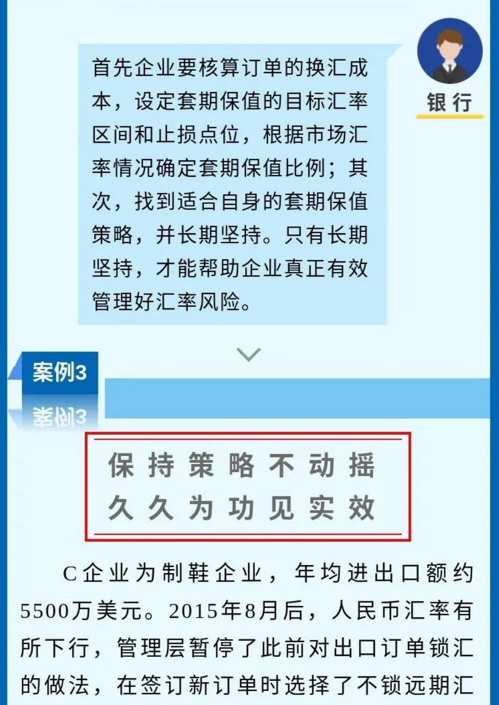 一张图系列--汇率避险经验之中小微企业篇 2021-08-26 15:29 据国家外汇管理局网站8月17日报道:由于缺乏汇率风险管理机制和专业管理人员,企业出口收汇在近年来人民币汇率双向波动中,经常承受较大的损失。基于银行的测算,企业认识到持续套期保值策略,对中长期财务稳健的改善作用……制作:国家外汇管理局福建省分局