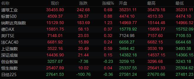 美股收盘情况:标普500指数上涨0.9%,报4509.37点;道琼斯工业平均指数上涨0.7%,报35455.8点;纳斯达克综合指数上涨1.2%,报15129.5点;纳斯达克100指数上涨1%,报15432.95点;罗素2000指数上涨2.9%,报2277.151点。