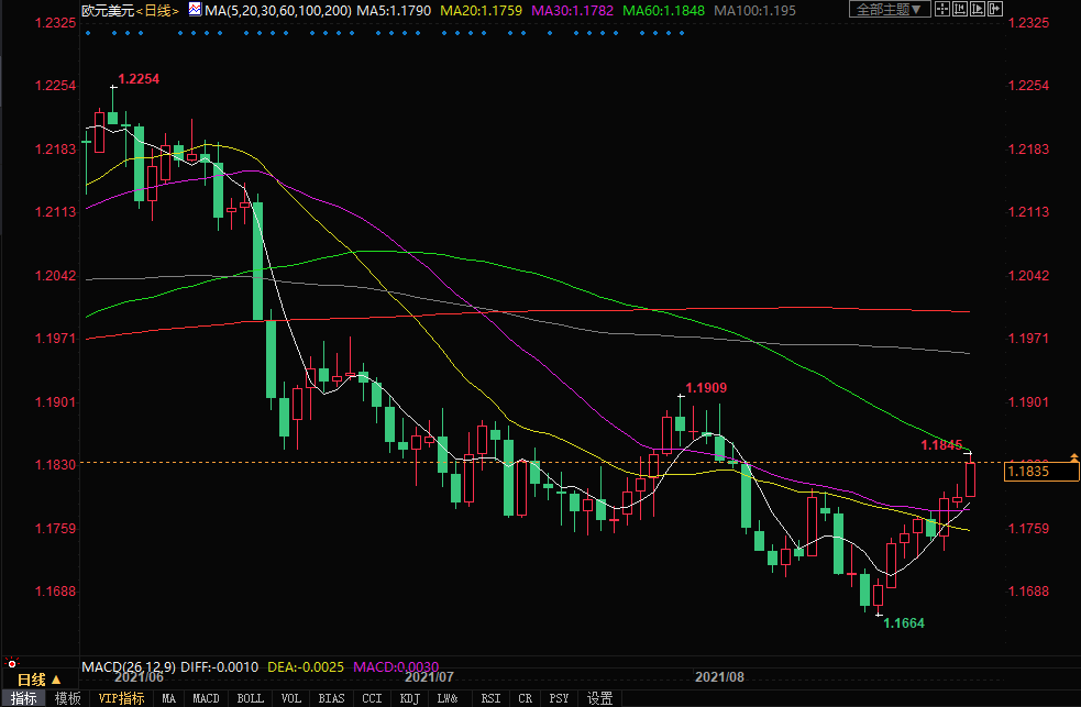 北京时间8月31日20:55,欧元兑美元报1.1835/37。