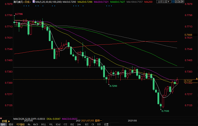 澳元兑美元逆势上行,有望收回本月全部跌幅