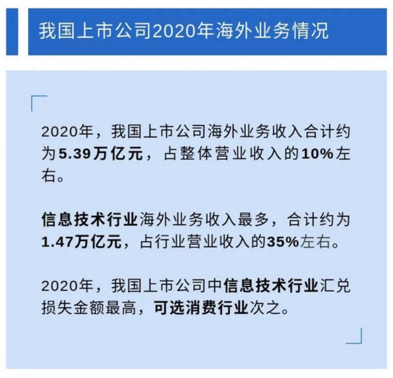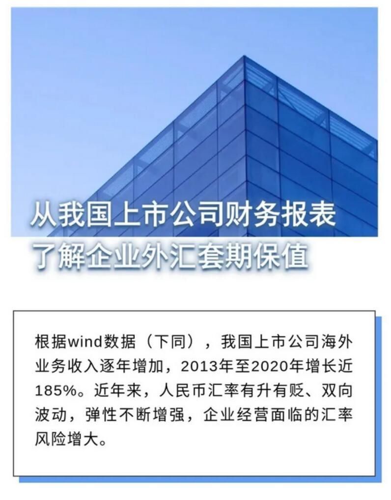 一张图:从我国上市公司财务报表了解企业外汇套期保值 2021-08-31 16:58 我国上市公司海外业务收入逐年增加,2013年至2020年增长近185%。近年来,人民币汇率有升有贬、双向波动,弹性不断增强,企业经营面临的汇率风险增大。制作:国家外汇管理局广东省分局