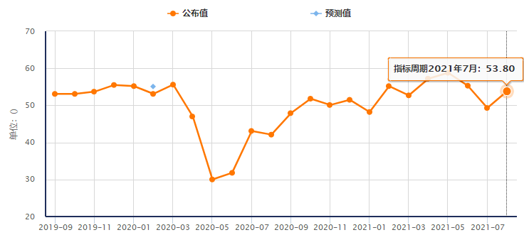 服务业7月份的数据为53.8,今年的平均数据为54.6,远高于50的荣枯分界线。预计9月3日公布的8月份数据将降至51.5。7月制造业就业人数为52.9,今年平均为53.6,9月1日发布的数据预计8月为51.4。