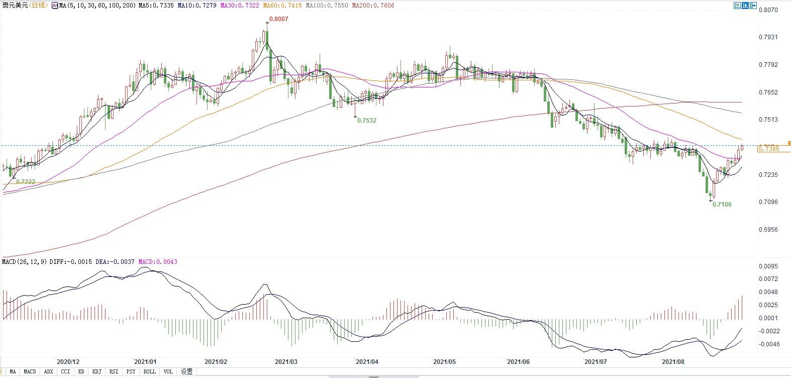 北京时间9月2日20:25,澳元兑美元报0.7383/85。