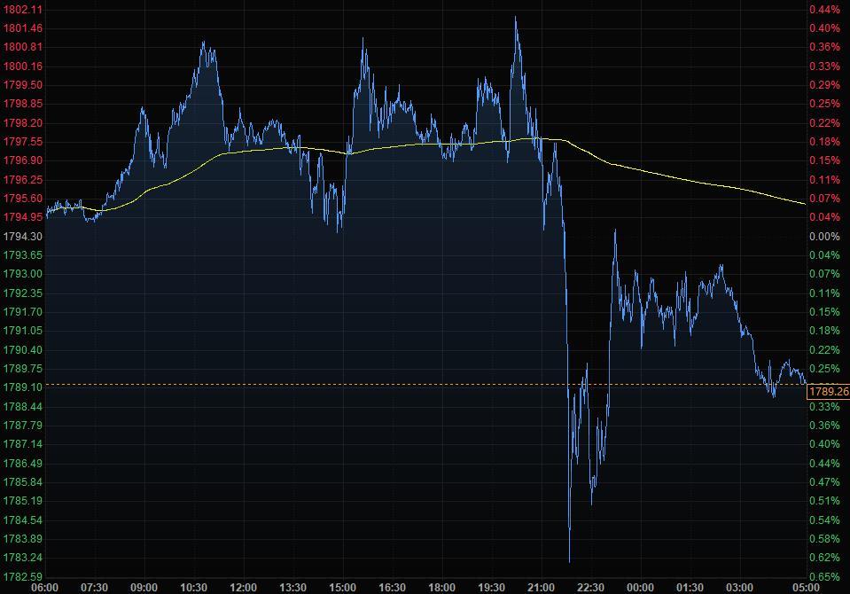 现货黄金周三继续走低,盘中一度刷新8月26日以来低点至1782.59美元/盎司;因美元走强和美债收益率上升,盖过了对全球经济成长忧虑加重对金价的提振。