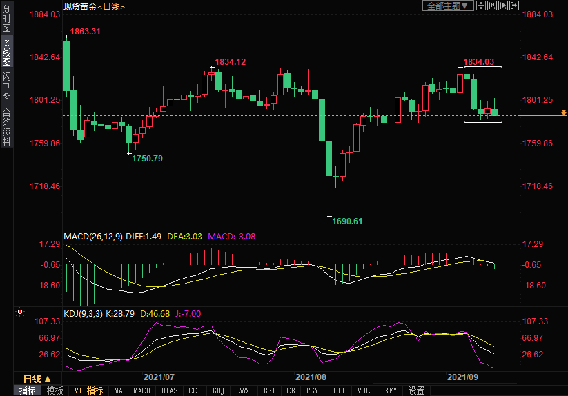 现货黄金本周下跌2.2%至1787.58美元/盎司,终结此前周线四连涨。本周美元指数止跌回升,给了黄金多头重击,另外美联储官员目前普遍支持年内缩减购债,市场普遍预计美联储从11月正式开始,这也给金价带来巨大压力。不过欧洲央行周四宣布缩减购债给金价带来了喘息之机,股市本周连跌四天也给金价带来一些支撑,因市场普遍的风险情绪消退。