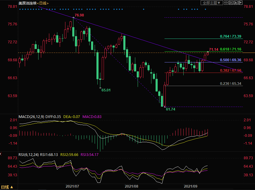 日线级别:随着新飓风“尼古拉斯”再次光顾墨西哥湾,市场担忧情绪再度发酵,这帮助油价登上六周新高。
