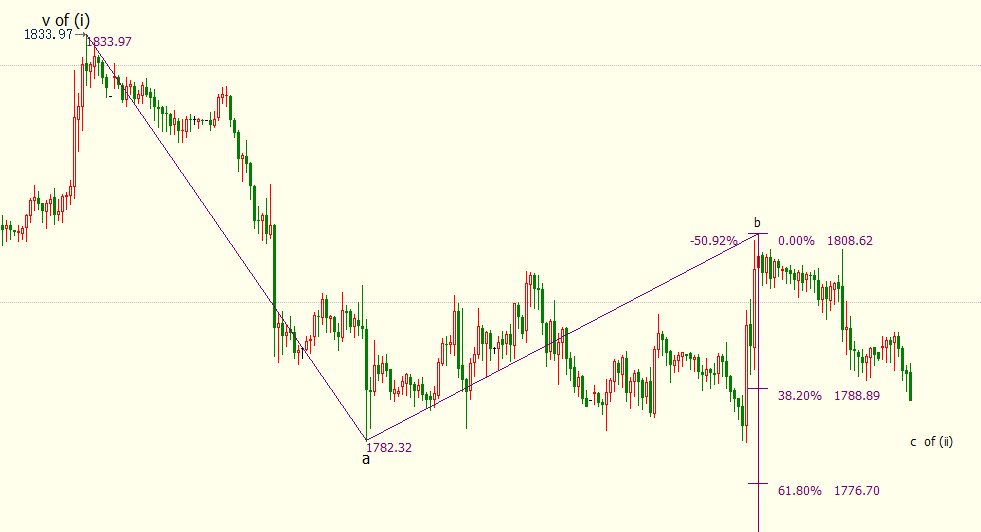 小时图上看,金价自1809美元开启下行c浪走势,跌破38.2%目标位1789美元,后市料下探1777美元。c浪是自1834美元开启的下行(ii)浪的子浪。(ii)浪是自1680美元开启上行((i))浪的子浪。