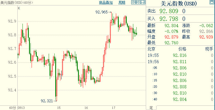 北京时间19:56,现货黄金上涨0.29%至1758.88美元/盎司;COMEX期金主力合约上涨0.13%至1758.9美元/盎司;美元指数下跌0.06%至92.810。