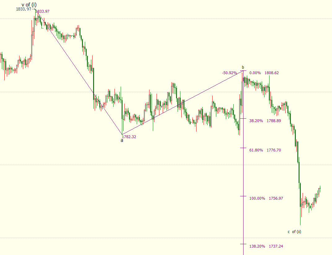 小时图上看,金价自1809美元开启下行c浪走势,跌破100%目标位1757美元,后市料下探138.2%目标位1737美元。c浪是自1834美元开启的下行(ii)浪的子浪。(ii)浪是自1680美元开启上行((i))浪的子浪。