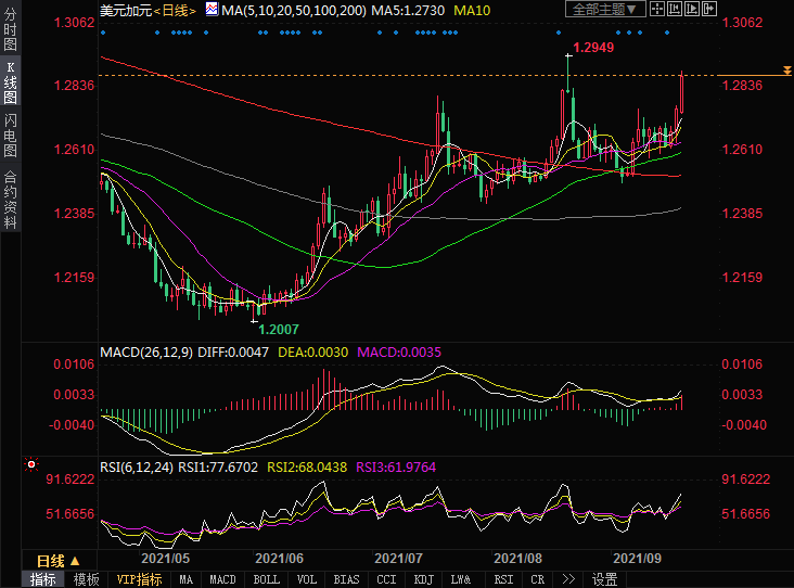 周一(9月20日)美元兑加元在欧洲午盘继续走高,并在过去一小时攀升至1.2850上方的一个月新高。