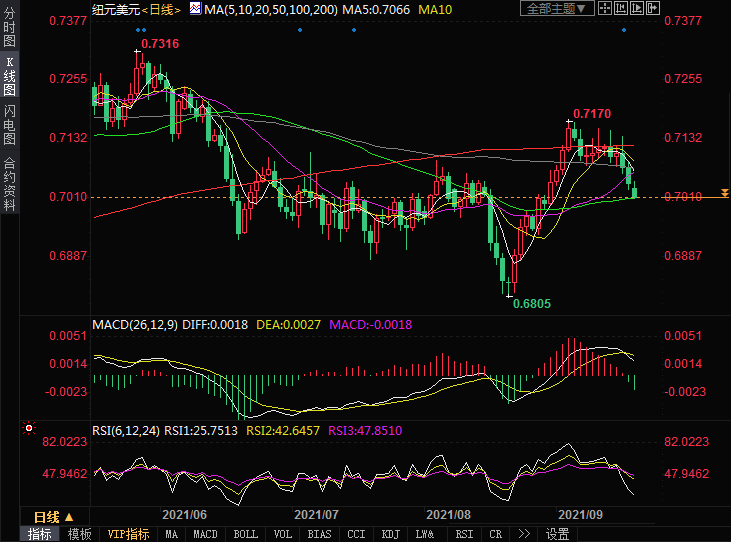 纽元兑美元跌创三周新低,空头挑战0.70关口