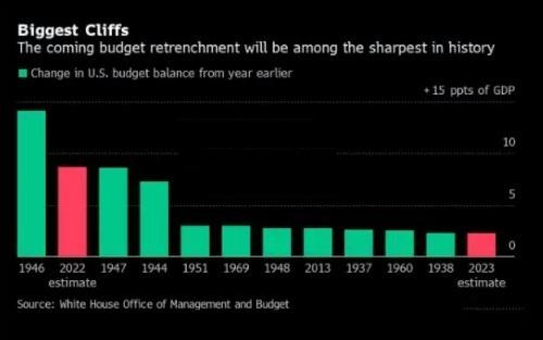 如下图所示,接下来的财政减码程度将是美国历史上最大的