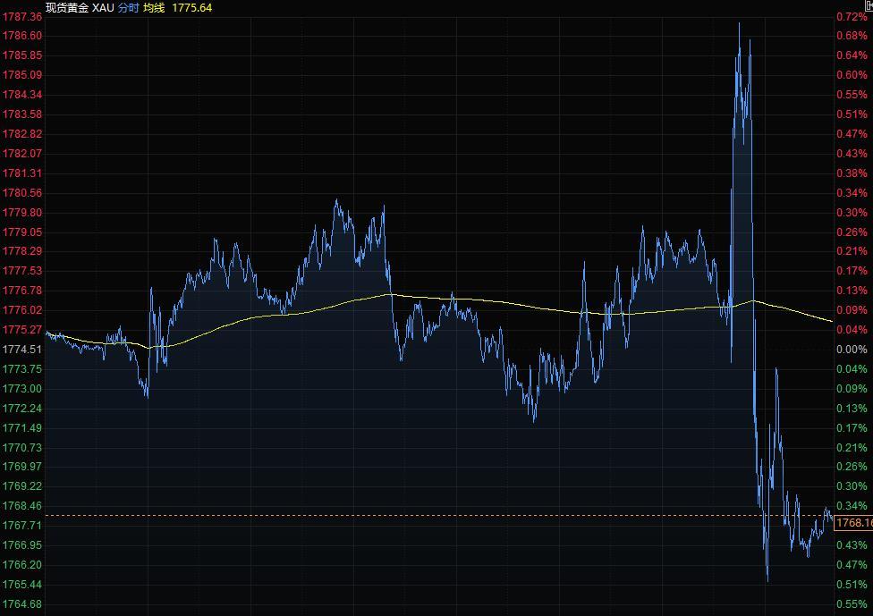现货黄金周三在震荡交投中下跌,尾盘收报1768.16美元/盎司, 跌0.36%;此前美联储暗示,将早于预期升息,并在明年年中逐步结束购债。