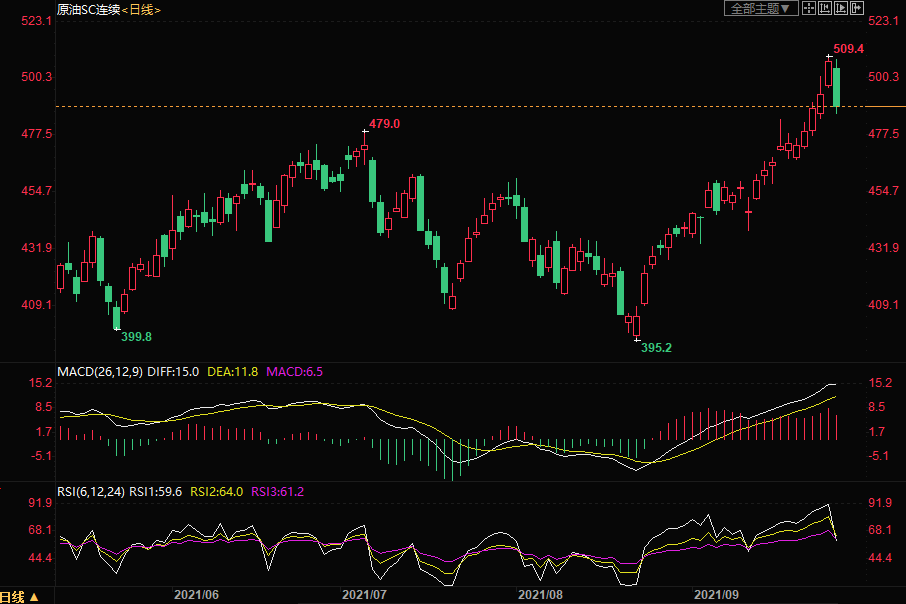 周三(9月29日)上海原油价格下跌,主力合约2111终盘收于489.2元/桶,跌12.7元/桶,跌幅2.53%,此前美国原油库存意外增加,对需求的疑虑再次浮现,全球新冠病例继续增加。