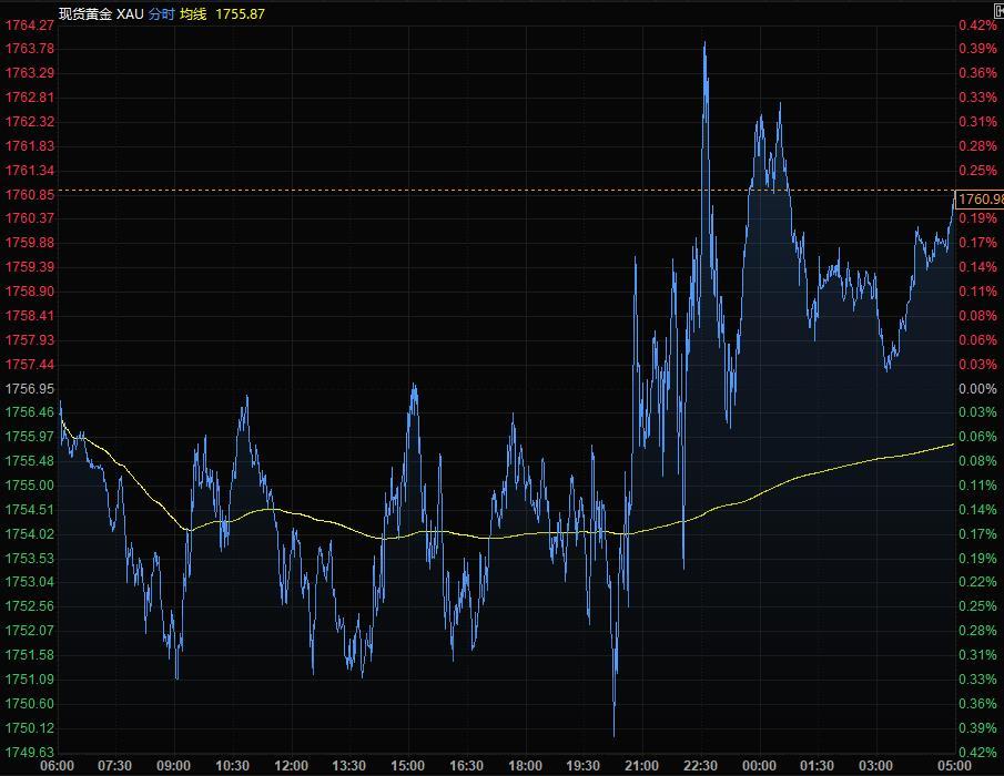 金价录得自9月3日以来的首次周线上涨,现货黄金小幅走高,收于1761美元关口附近,因美元走弱,以及对通胀上升和经济增长风险的担忧,盖过了对即将加息的押注。