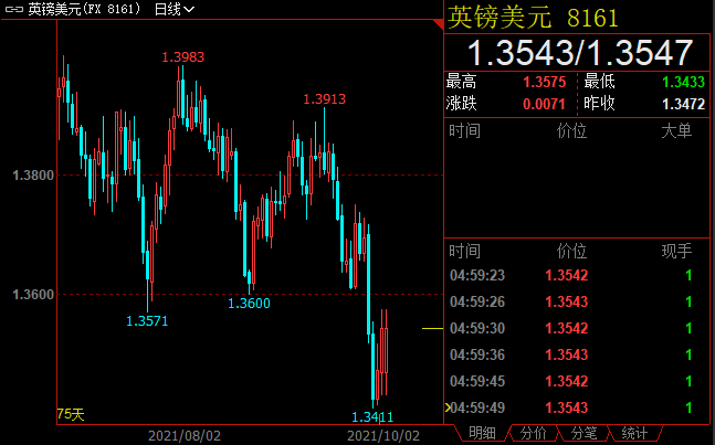英镑兑美元收跌0.92%,连续第四周下挫,并创下2020年12月23日以来新低至1.3411,对英国面临经济严冬的担忧加剧了英镑跌势。投资者担忧英国天然气价格急升和近一周汽油短缺的担忧,盖过了英国央行可能加息的言论。
