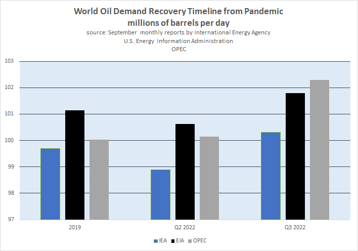 2019年,2022年第二季度和第三季度全球石油需求复苏时间表