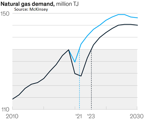 Rystad Energy列出全球不同地区对液化天然气需求的预测