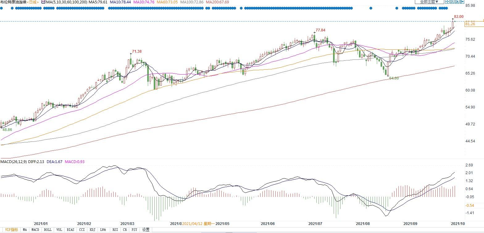 北京时间10月5日9:31,布伦特原油主力合约价格报81.22美元/桶。