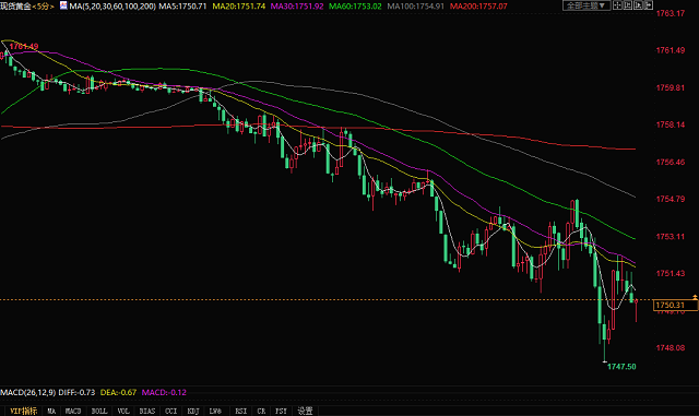 北京时间10月6日15:45,现货黄金报1750.31美元/盎司。