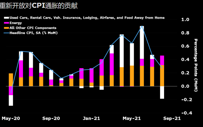 9月份受到国际运输成本上升和港口拥堵影响的家电、消费电子产品和其他非必需消费品价格上涨,将推升核心通胀率。