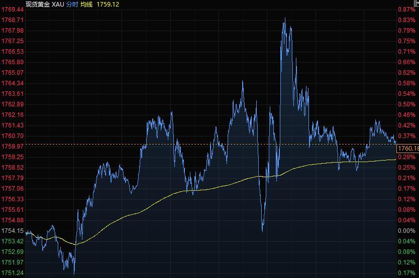 金价周二上涨,现货黄金收于1760美元之上,通胀担忧加剧削弱了风险偏好,提振了对避险黄金的需求,但美元走强限制了涨幅。
