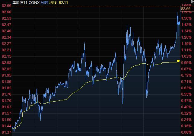 商品收盘方面,COMEX 12月黄金期货收跌将近1.7%,报1768.30美元/盎司;WTI 11月原油期货收涨0.97美元,涨幅1.19%,报82.28美元/桶;布伦特12月原油期货收涨0.86美元,涨幅1.02%,报84.86美元/桶。
