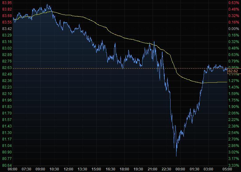 油价创下两周最大跌幅,美油尾盘跌近1%,收报82.62美元/桶;对全球经济增长的担忧让油价从超买区域回落,本周之前维持在2014年以来的最高水平附近。