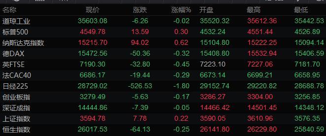 美股收盘情况:标普500指数上涨0.3%,报4549.78点,道琼斯工业平均指数持平,纳斯达克综合指数上涨0.6%,报15215.70点,罗素2000指数上涨0.3%,报2296.18点。