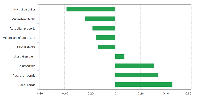 图4:以澳元计价的黄金与超级基金投资组合中的大多数资产呈负相关