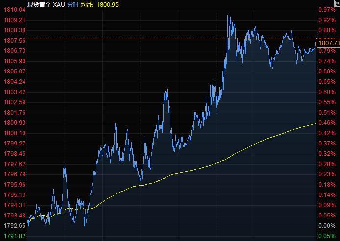 黄金连续第五天上涨,为7月份以来最长连涨,因通胀持续走高的风险增强了黄金的吸引力。现货金价升破每盎司1800美元--2020年中以来的关键技术水平。虽然美元走势尚未反映出对持续通胀和加息预期的上升,但金价正在攀升,因为市场担心美联储行动太慢。