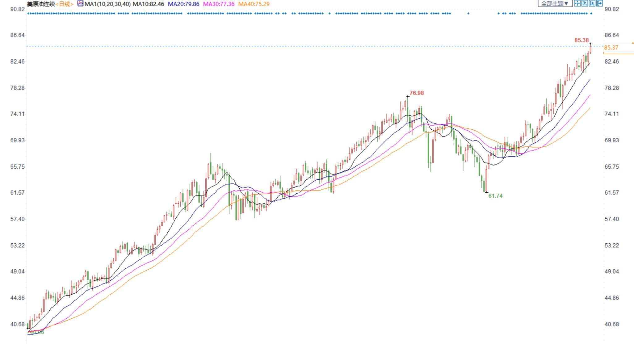 美油上破85美元延续强劲升势,供需失衡持续支撑油价