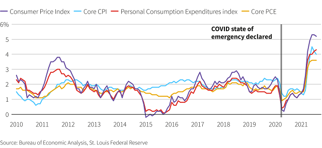 美联储官员此前便已预计,随着全球经济从疫情中反弹,通胀将会上升。但一些经济学家认为,创纪录水平的联邦支出将导致物价持续上涨,而多数美联储官员最初预计,通胀的飙升只是疲弱的经济恢复正常后的“基数效应”,以及重新开放过程中不可避免的一些波动带来的短暂插曲。
