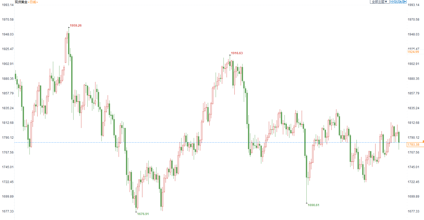 周六(10月30日)当周金价维持震荡走低的走势,金价当周下跌9.27美元,跌幅0.52%。