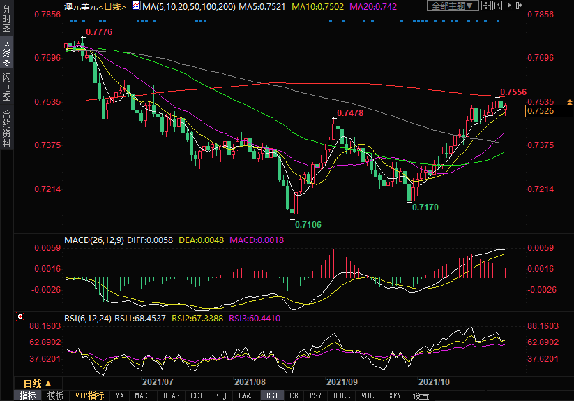 周一(11月1日)澳元兑美元在0.7500关键心理关口下方显示出弹性,并在新一周的第一天吸引了一些低位买盘,短线需要关注上方200日均线阻力。