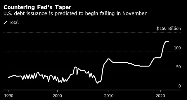 尽管财政部的借款需求在一定程度上取决于国会计划在未来几周实施的两项较长期财政计划,但美国预算赤字目前正处于下降趋势,去年为因疫情而实施的创纪录发售规模目前已经变得没有必要。