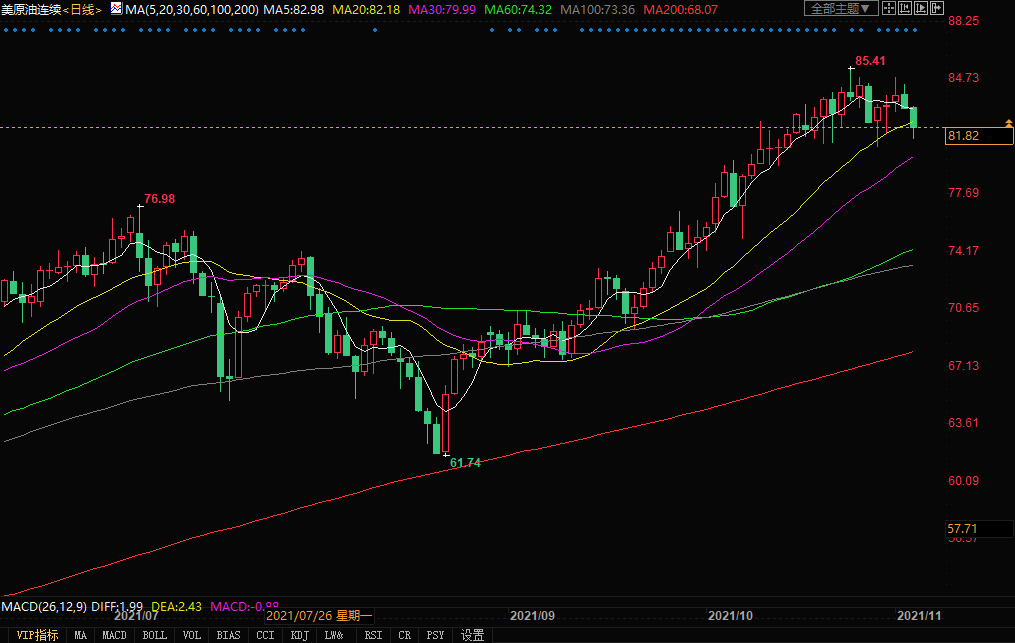 周三(11月3日)美原油跌2.5%,此前美国石油协会报告,截至10月29日当周,美国原油供应增加360万桶,远超市场预期。另一方面,美国继续施压OPEC+要求其比目前计划更积极地提高产量。分析人士预测,如果OPEC+拒绝加快恢复已停止供应的速度,美国可能会动用紧急石油储备。