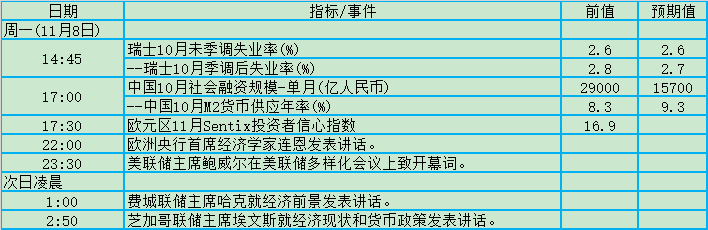 聚焦FED官员表态!11月8日-14日当周重磅事件及数据前瞻
