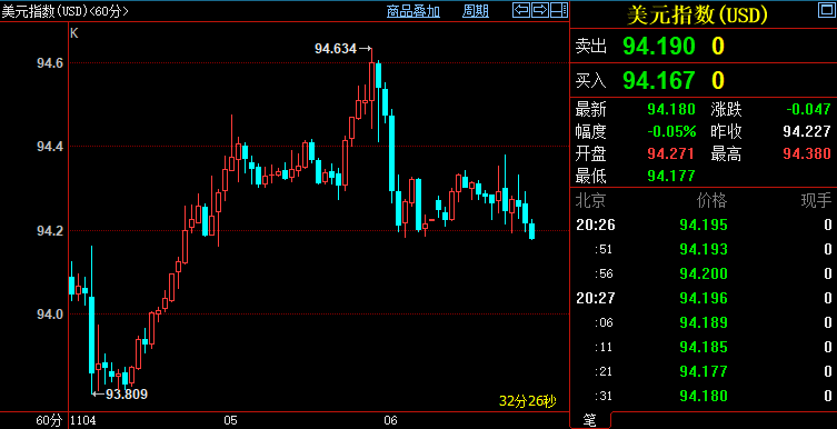 北京时间20:26,现货黄金下沉0.09%至1816.74美元/盎司;COMEX期金主力合约上浮0.06%至1818.0美元/盎司;美元指数下沉0.02%至94.196。