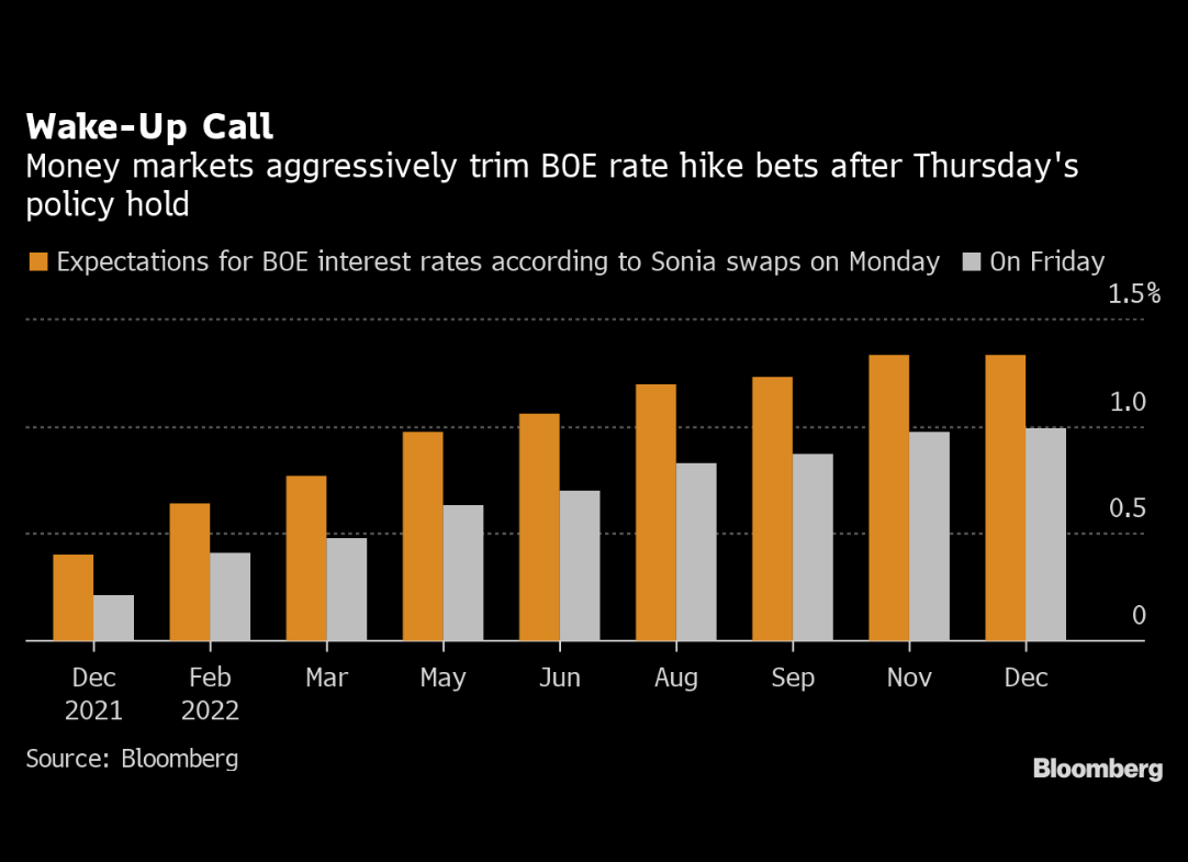 【交易员推后对英国央行加息押注,预计基准利率2022年不会达到1%】