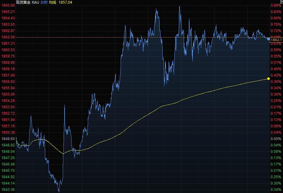现货黄金收涨0.68%,报1862.11美元/盎司,接近前一交易日触及的五个月高位,此前强劲的美国消费者物价指数(CPI)数据推动投资者争相买入被视为对冲通胀工具的黄金。