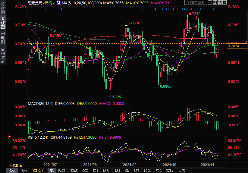纽元兑美元在欧洲时段继续走高,并在过去一小时内升至0.7075-800区域附近的三天高位。