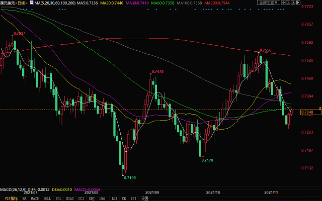 北京时间11月15日15:15,澳元兑美元报0.7348/50