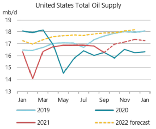 8月下旬,一场飓风袭击了位于墨西哥湾沿岸的美国主要生产和出口中心,但美国的产量弥补了上月全球石油产量增长的一半,并将在2022年占非OPEC+供应增量的60%。