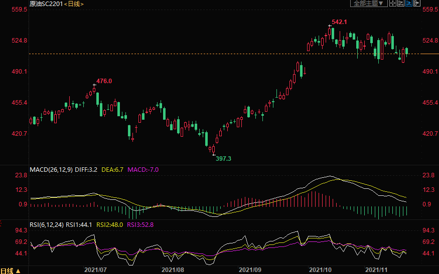API数据显示,截至11月12日当周,美国原油库存增加65.5万桶。原油和馏分油库存增加,而汽油库存下滑。根据IEA的月度报告,需求增长依然强劲,但供应正在追赶上来,10月份石油库存的变化表明“趋势可能正在转变”。如果这个预测是正确的,将给饱受物价上涨冲击的消费者带来极大的安慰。从目前原油市场来看,价格正朝着调整的预期演变,需警惕调整风险。
