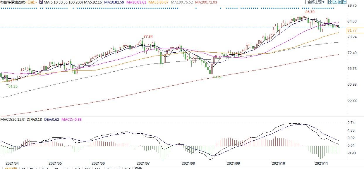 (布伦特原油主力合约日线图)