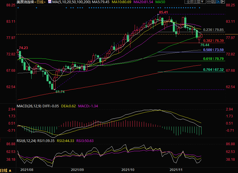 下方初步支撑关注11月4日低位78.25,进一步关注38.2%回撤位76.39以及10月7日低位74.96。