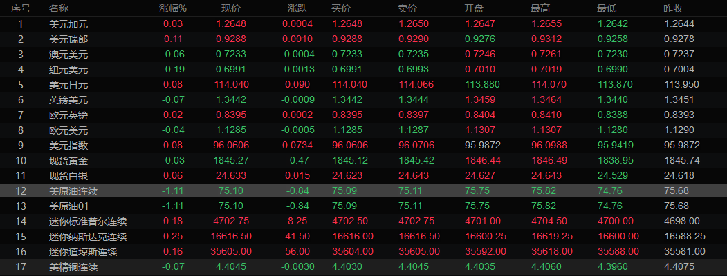 油价上周五大跌,美油一度跌逾4%,创10月7日以来新低至75.09美元/桶;布油跌穿每桶80美元,欧洲新冠病例数激增可能减缓经济复苏,同时投资者也在权衡主要经济体释出原油储备为油价降温的可能性。